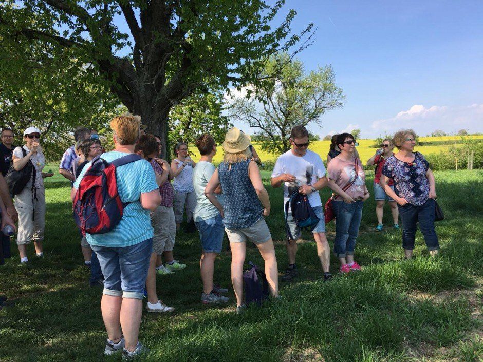 Am Samstag, den 21.04.2018, trafen sich die Mitglieder des Chores Singsation, um gemeinsam einen stimmungsvollen und unterhaltsamen Tag zu verbringen. Los ging es im Sängerheim mit einem Gläschen Sekt und kleinen Häppchen. Das Wetter meinte es ebenso gut mit uns. So liefen wir bei strahlendem Sonnenschein zusammen zum Bahnhof, um die Reise mit der S-Bahn nach Unteröwisheim anzutreten. In Unteröwisheim empfing uns auch gleich unsere nette Tourbegleitung Bettina Hartlieb. Mit ihr erkundeten wir die Tiefen des Kraichgaus, ein Wandergebiet welches sie als ein „Juwel des Kraichgaus“ beschreibt und wanderten frohen Mutes über Hohlwege und bunten Landschaften in Richtung Oberöwisheim. Neben geschichtlichem und sehr interessanten Informationen über die wunderbare Naturkulisse ging es uns ebenso um unsere Gemeinschaft, die wir durch muntere Gespräche stärken konnten. In Oberöwisheim angekommen, durften wir uns an einer Erfrischung in der eigens eingerichteten Eventscheune, umgeben von einem sehr schön gepflegtem Garten, erfreuen.