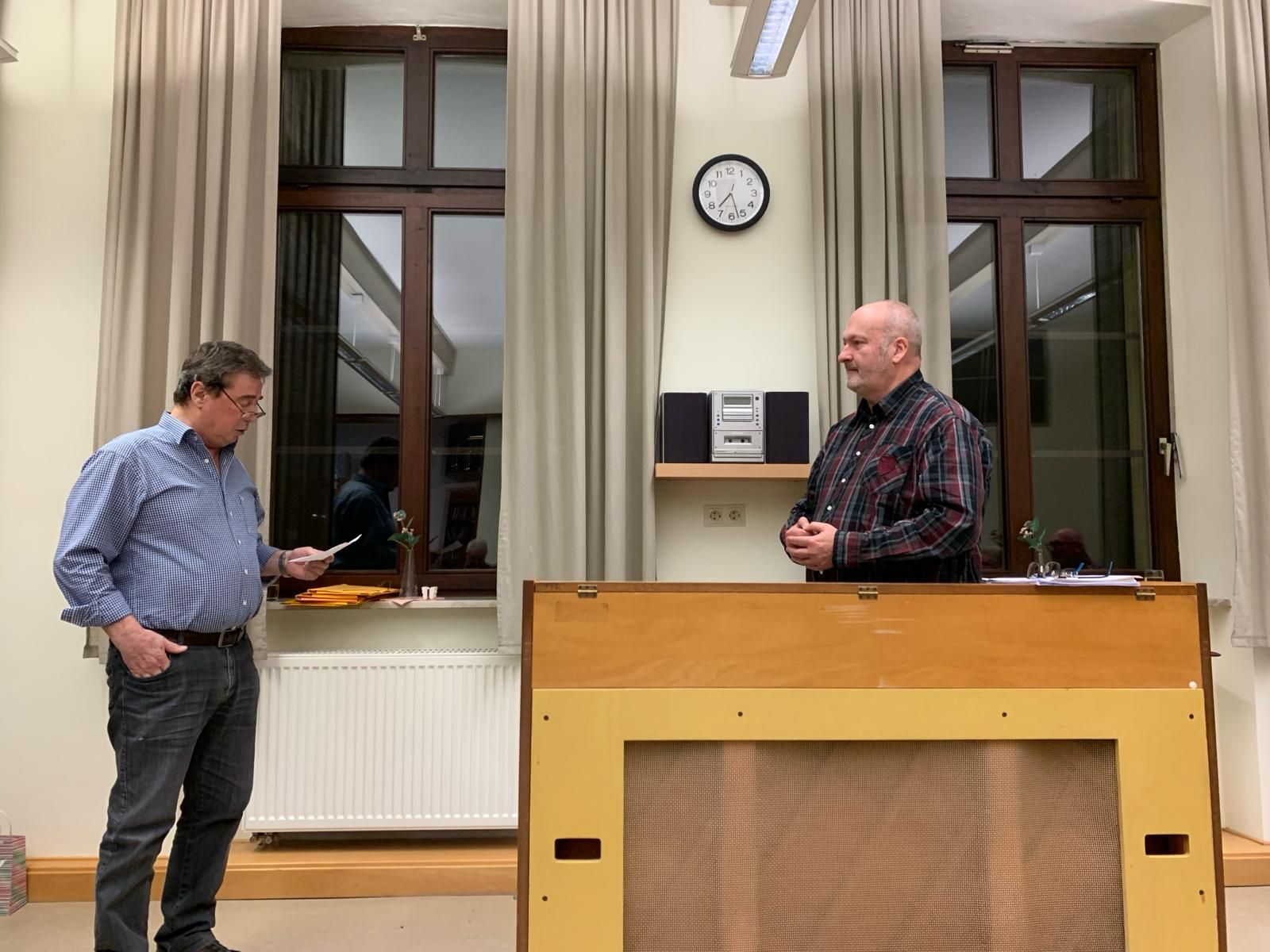Nach fast 15jähriger Tätigkeit hat sich der Gesangverein Frohsinn Stettfeld am Montag, dem 19.02.2024, im Rahmen der Singstunde, von seinem langjährigen Dirigenten, Klaus Siefert, in Anwesenheit aller aktiven Sänger verabschiedet.